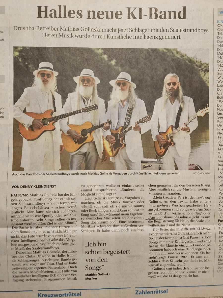 Vier Boys, die nicht mehr ganz jung sind, rocken den Saalestrand. Sie singen vom Baden, Bratwurstessen und Biertrinken am schönen Saalestrand. Musikgenres sind ihnen egal: ob Country, Polka, Rock oder Schlager – die Saalestrandboys machen einfach geile Songs!